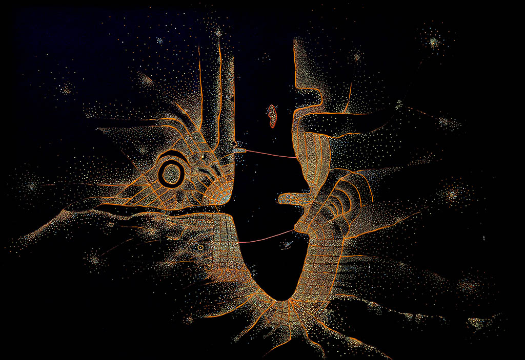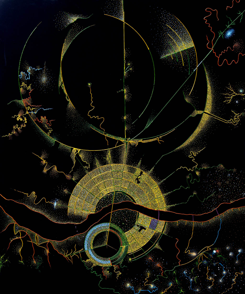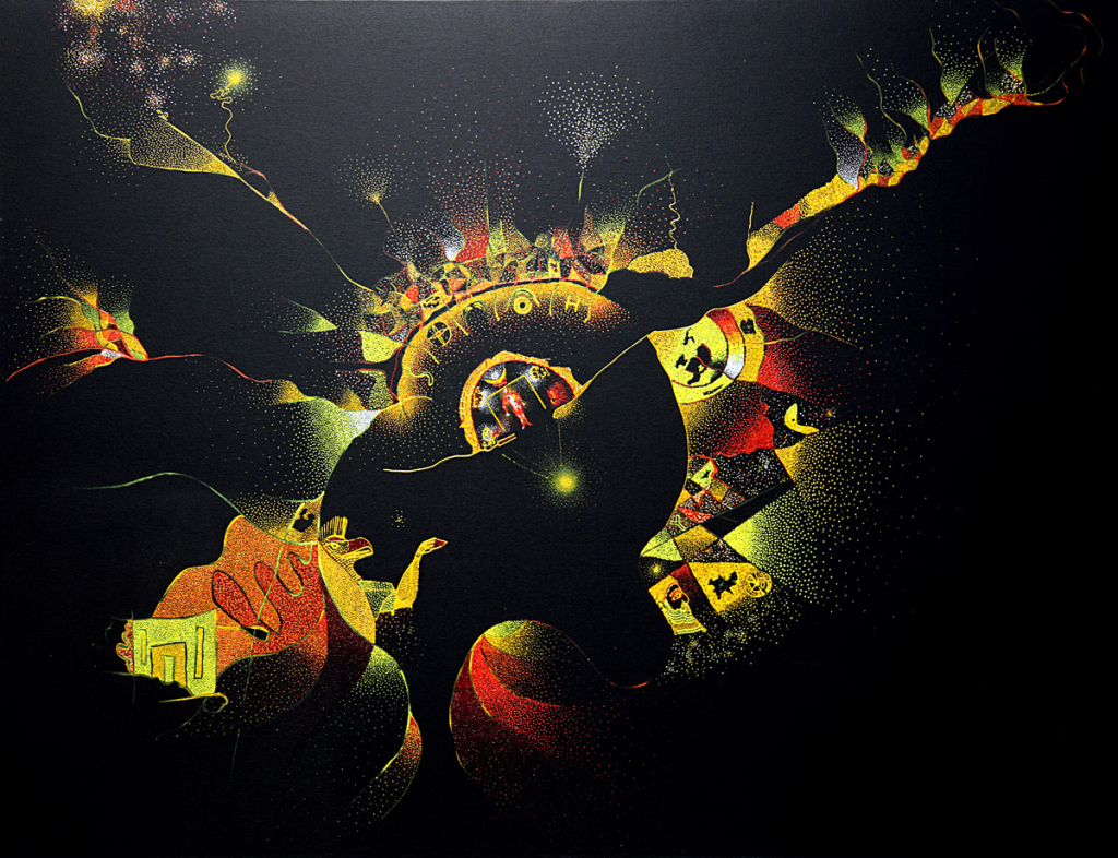 Son on yılda kendine ait bir dil ve biçem arayışında olan Baycan, bir gün rüyasında kendisini Anka Kuşu’nun kanadında, bilmediği bir şehrin üzerinde gece karanlığında uçarken görür. Kuşun kanatlarından aşağıya baktığında şehrin ışıkları nokta şeklindedir. Uyandığında hayal ettiği antik şehirleri artık nasıl çizeceğini biliyordur. Belleğindeki çocukluk anlarını ışıklı formlara dönüştürerek tuval üzerinde çalışan Baycan, işlerini Puantilist teknik kullanarak üretmeye başlar.
