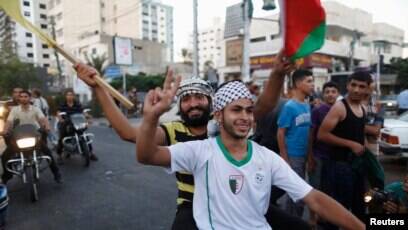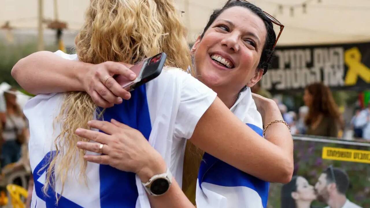 Tel Aviz’de rehine yakınları barışı kutluyor.