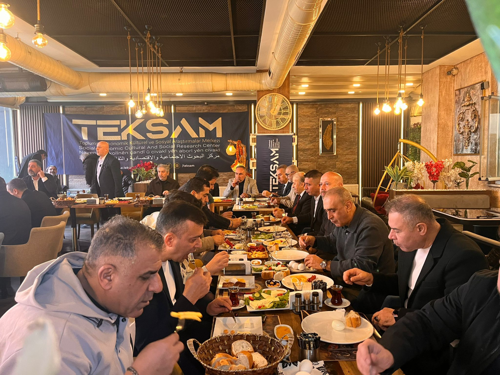 Farklı meslek gruplarının katılımıyla düzenlenen kahvaltı programında TEKSAM Başkanı Talip Aksoy, Merkezin yeni yıldaki stratejisini “Adalet ve Barış” ekseninde dünyaya duyurdu.